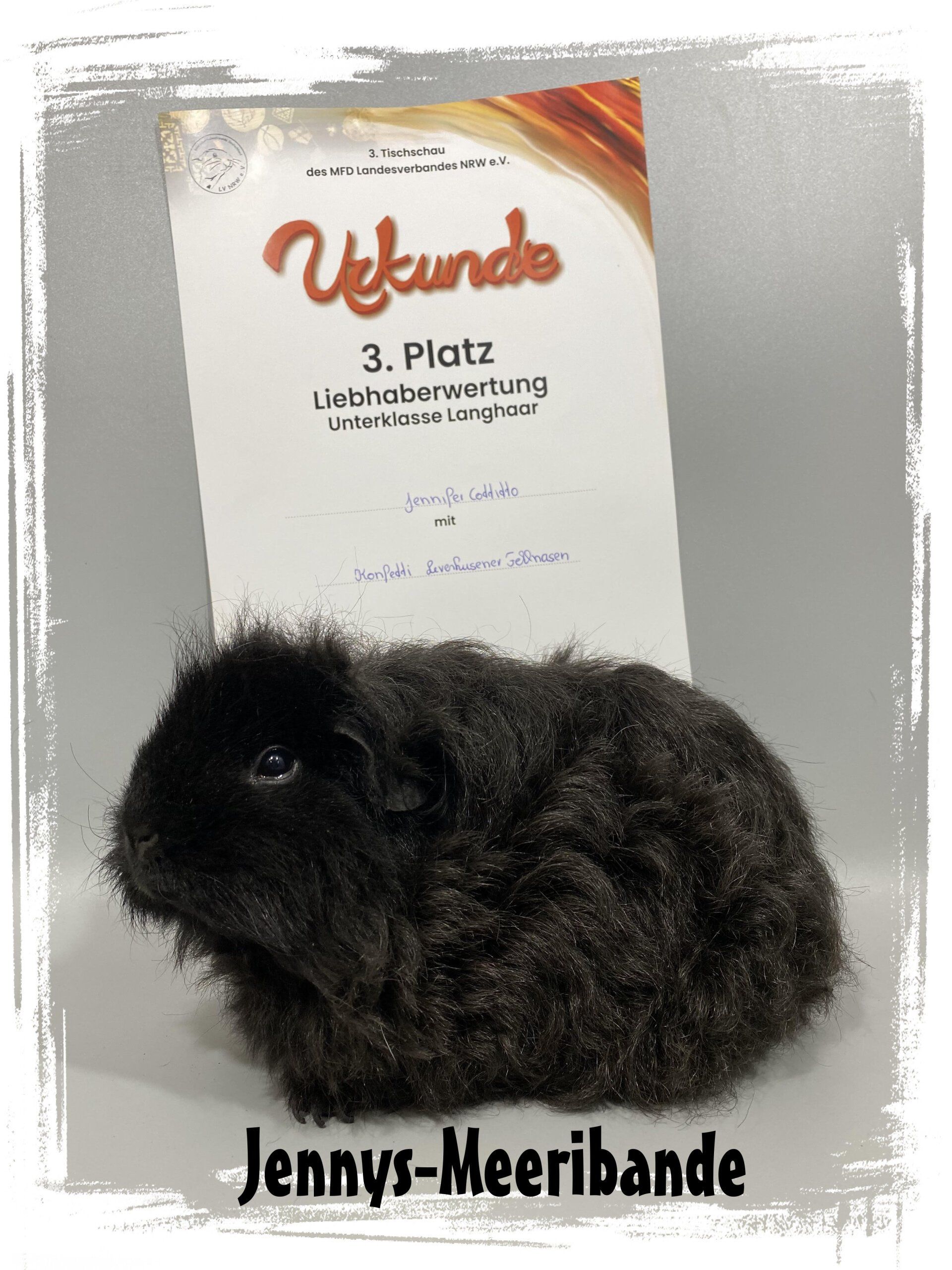 Unsere Wildberry war auf der 16. großen bayrischen Meerschweinchenschau erfolgreich und bekam den Sonderpreis des schönsten kurzhaarigen (Na) Meerschweinchen der Austellung den Preis verliehen